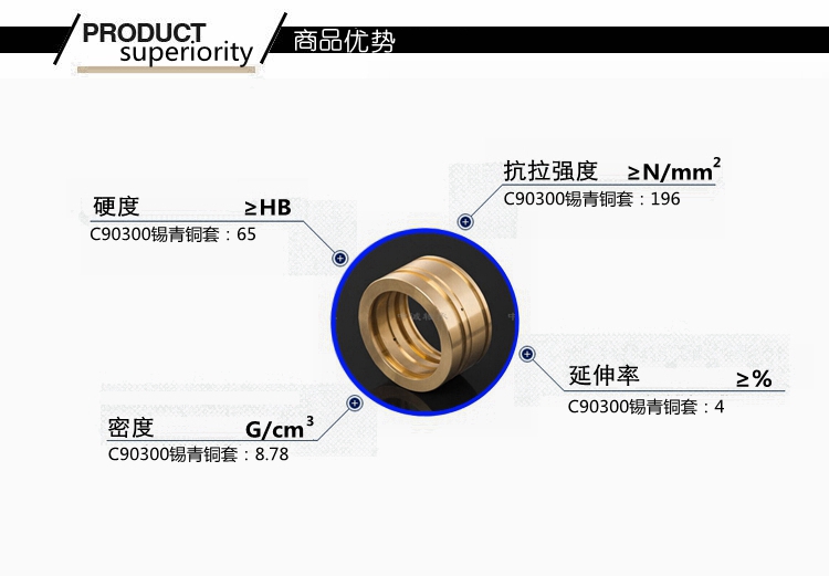本產(chǎn)品實(shí)行ASTM標(biāo)準(zhǔn)………………………………………………… 根據(jù)客戶產(chǎn)品需求我們提供的鑄造方式有:離心鑄造,連續(xù)鑄造和金屬型鑄造?!?牌號(hào)C90300合金銅化學(xué)成分:Cu86-89 Sn7.5-9 Pb0.3 Zn3-5 Fe0.2 Al0.005 Si0.005 Ni1 Sb0.2 P1.5 S0.05…………對(duì)比國(guó)內(nèi)相近牌號(hào):ZCuSn8Zn4