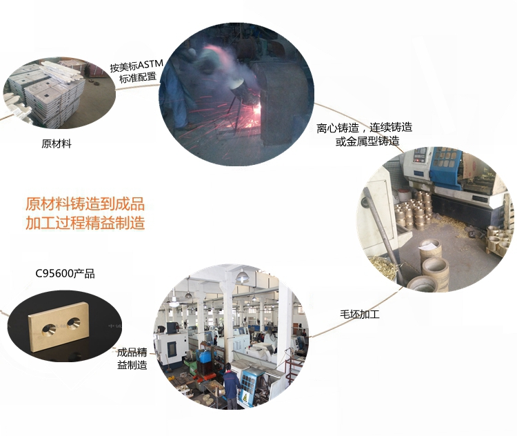 本產(chǎn)品實(shí)行ASTM標(biāo)準(zhǔn)………………………………………………… 根據(jù)客戶產(chǎn)品需求我們提供的鑄造方式有:離心鑄造,連續(xù)鑄造和金屬型鑄造?!?牌號(hào)C95600合金銅化學(xué)成分:Cu≥88 Al6-8 Si1.8-3.2 Ni0.25