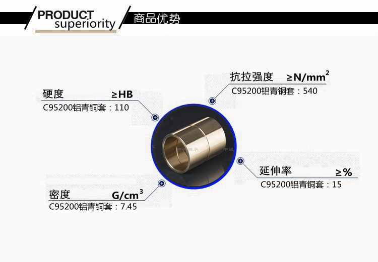 本產品實行ASTM標準………………………………………………… 根據客戶產品需求我們提供的鑄造方式有:離心鑄造,連續(xù)鑄造和金屬型鑄造?!?牌號C95200合金銅化學成分:Cu≥86 Fe2.5-4 Al8.5-9.5…………對比國內相近牌號:ZCuAl10Fe3