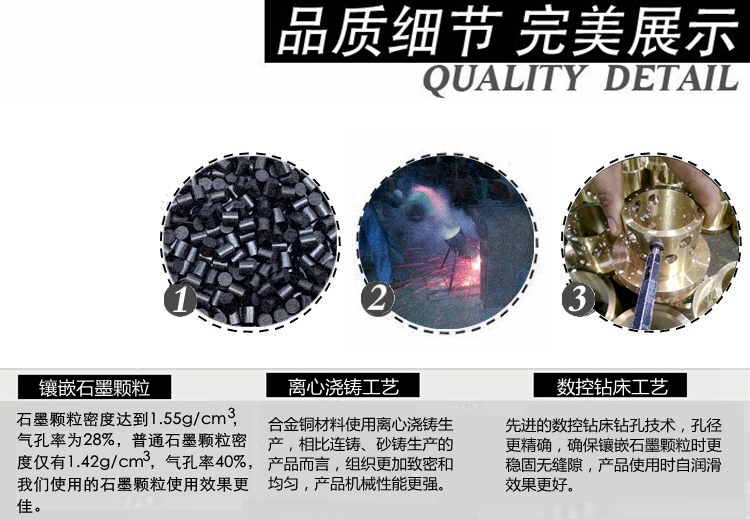 我們根據(jù)使用工況和環(huán)境要求,選擇不同的銅合金材料,如大氣環(huán)境選擇高力黃銅為基體;水環(huán)境下一般選用錫青銅為基體;高溫或海水腐蝕等工作環(huán)境選用鋁青銅為基體;其他特殊工況環(huán)境選擇相應(yīng)的銅合金材料為基體;然后根據(jù)產(chǎn)品的實(shí)際受力情況和運(yùn)動(dòng)方式,確定潤滑劑的排布方式和密度,以求達(dá)到最佳使用效果和壽命。 銅石墨軸承使用廣泛,如冶金機(jī)械,工程機(jī)械,注塑機(jī)械,水利機(jī)械,海工裝備,風(fēng)電設(shè)備,模具行業(yè),印刷包裝機(jī)械,礦山設(shè)備,石油化工機(jī)械,各種輕工機(jī)械等等。