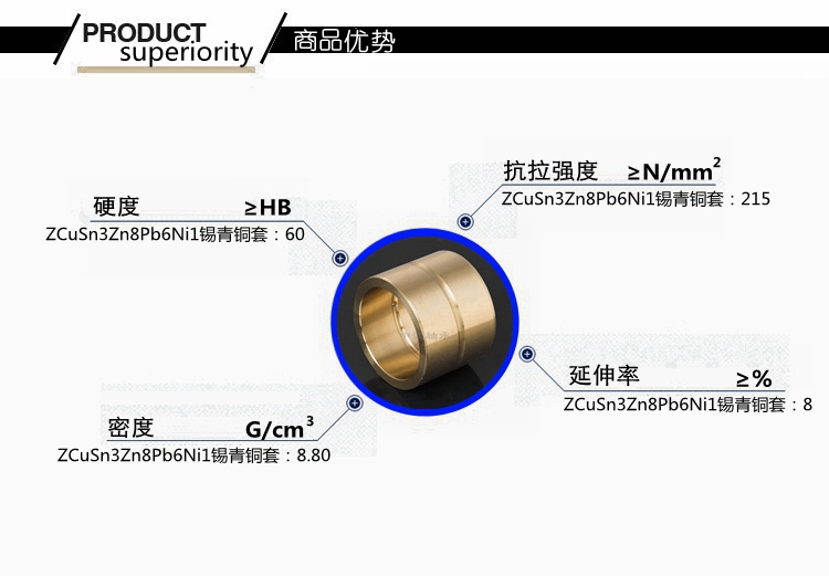 本產(chǎn)品實(shí)行GB/1176-1984標(biāo)準(zhǔn)……………………………………… 根據(jù)客戶產(chǎn)品需求我們提供的鑄造方式有:離心鑄造,連續(xù)鑄造和金屬型鑄造?!?牌號(hào)ZCuSn3Zn8Pb6Ni1合金銅化學(xué)成分:Cu余量 Sn2-4 Pb4-7 Zn6-9 Fe0.4 Al0.02 Si0.02 Ni0.5-1.5 Sb0.3 P0.05