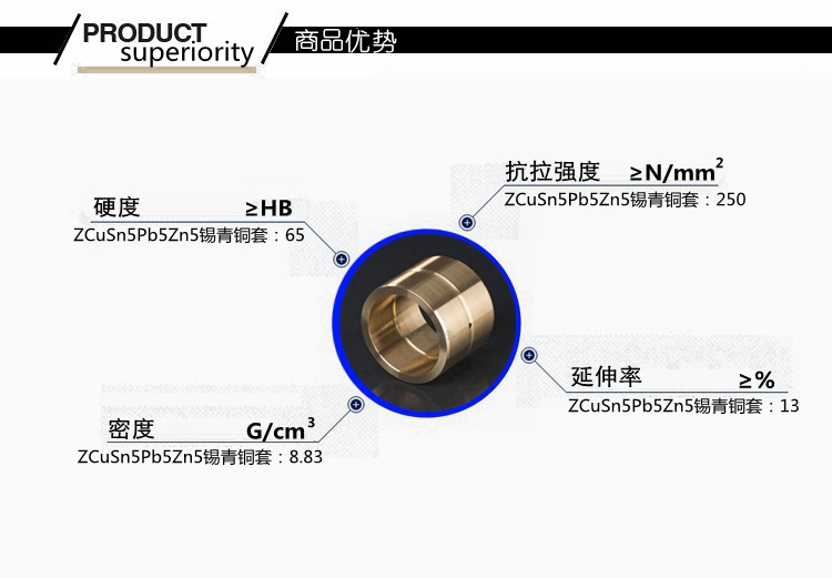 本產(chǎn)品實(shí)行GB/1176-1984標(biāo)準(zhǔn)……………………………………… 根據(jù)客戶產(chǎn)品需求我們提供的鑄造方式有:離心鑄造,連續(xù)鑄造和金屬型鑄造?!?牌號ZCuSn5Pb5Zn5合金銅化學(xué)成分:Cu余量 Sn4-6 Pb4-6 Zn4-6 Fe0.3 Al0.01 Si0.01 Ni2.5 Sb0.25 P0.05 S0.1