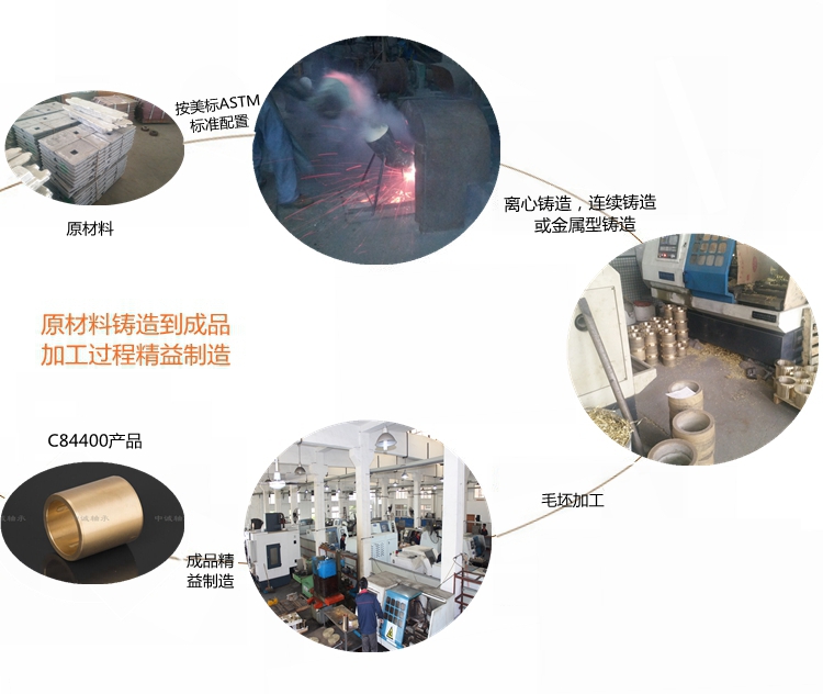 本產(chǎn)品實(shí)行ASTM標(biāo)準(zhǔn)………………………………………………… 根據(jù)客戶產(chǎn)品需求我們提供的鑄造方式有:離心鑄造,連續(xù)鑄造和金屬型鑄造?!?牌號(hào)C84400合金銅化學(xué)成分:Cu78-82 Sn2.3-3.5 Pb6-8 Zn7-10 Fe0.4 Al0.005 Si0.005 Ni1 Sb0.25 P1.5 S0.08